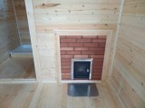 Стены и потолок обшиваются осиновой вагонкой класса "А" с прокладкой высокотемпературной отражающей изоляции (фольги). Пологи класс А двухъярусные из строганной осиновой доски 27×90мм.