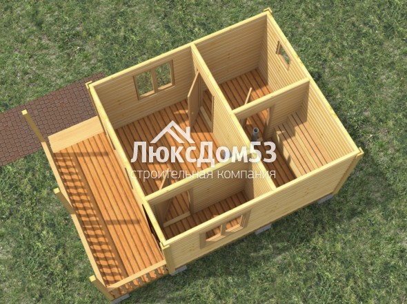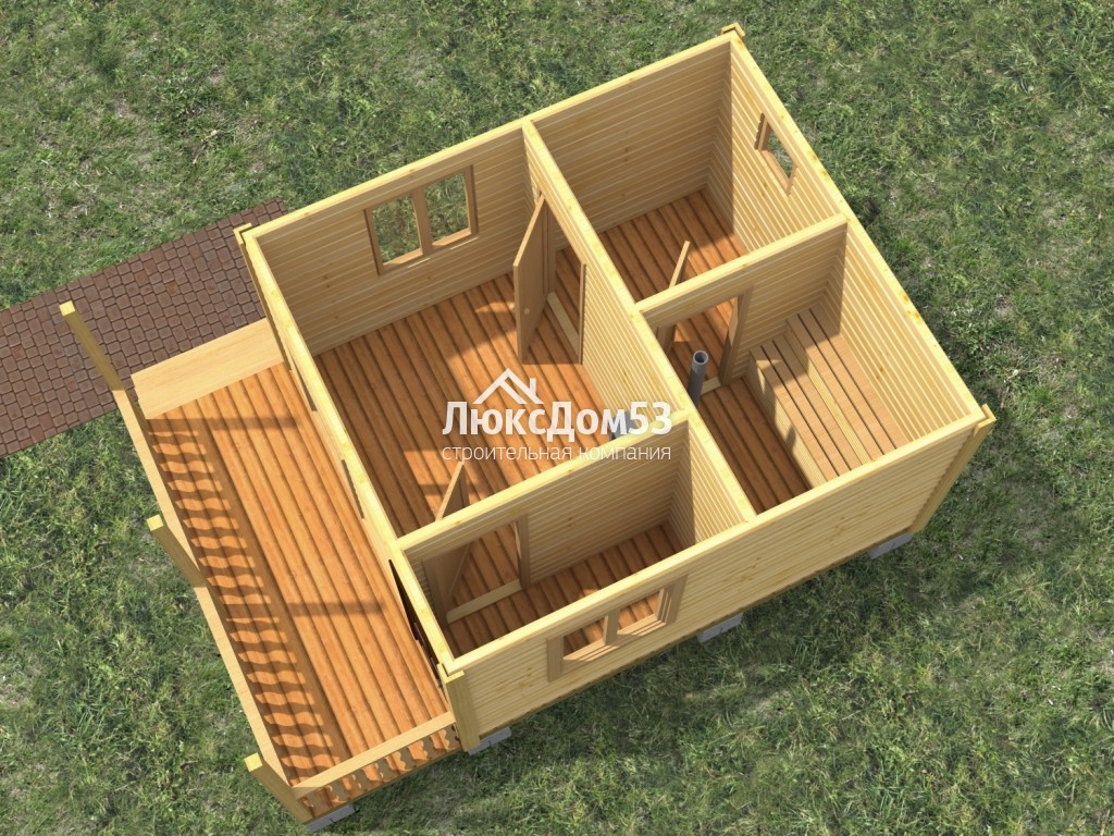 Брусовые, из строганного профилированного бруса 90×140мм. Толщина перегородок 90мм.
