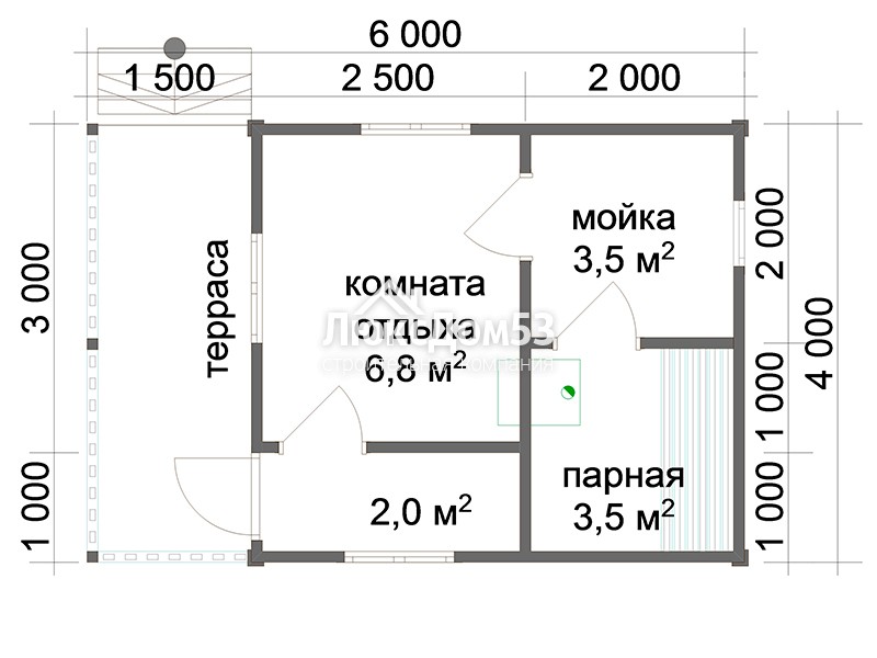 Вывод дымохода предусмотрен через крышу парного отделения (ДЫМОХОД ИЗ НЕРЖАВЕЙКИ!!!)