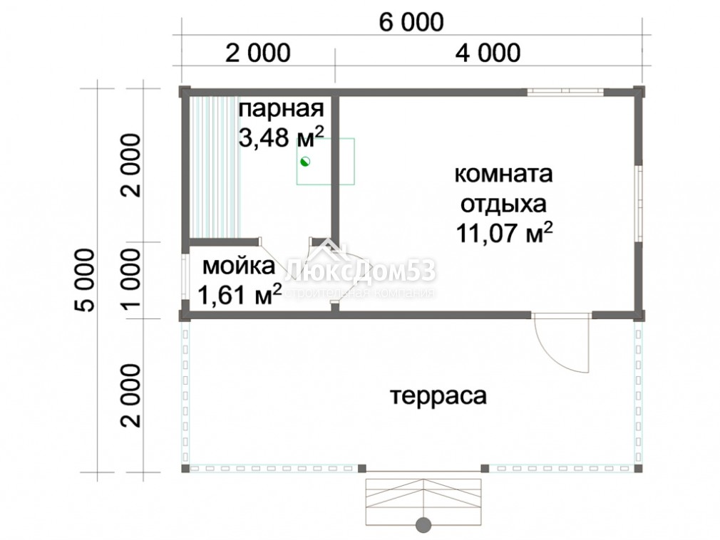 Веранда 6×2 м (обшивается вагонкой с внешней стороны), без утепления