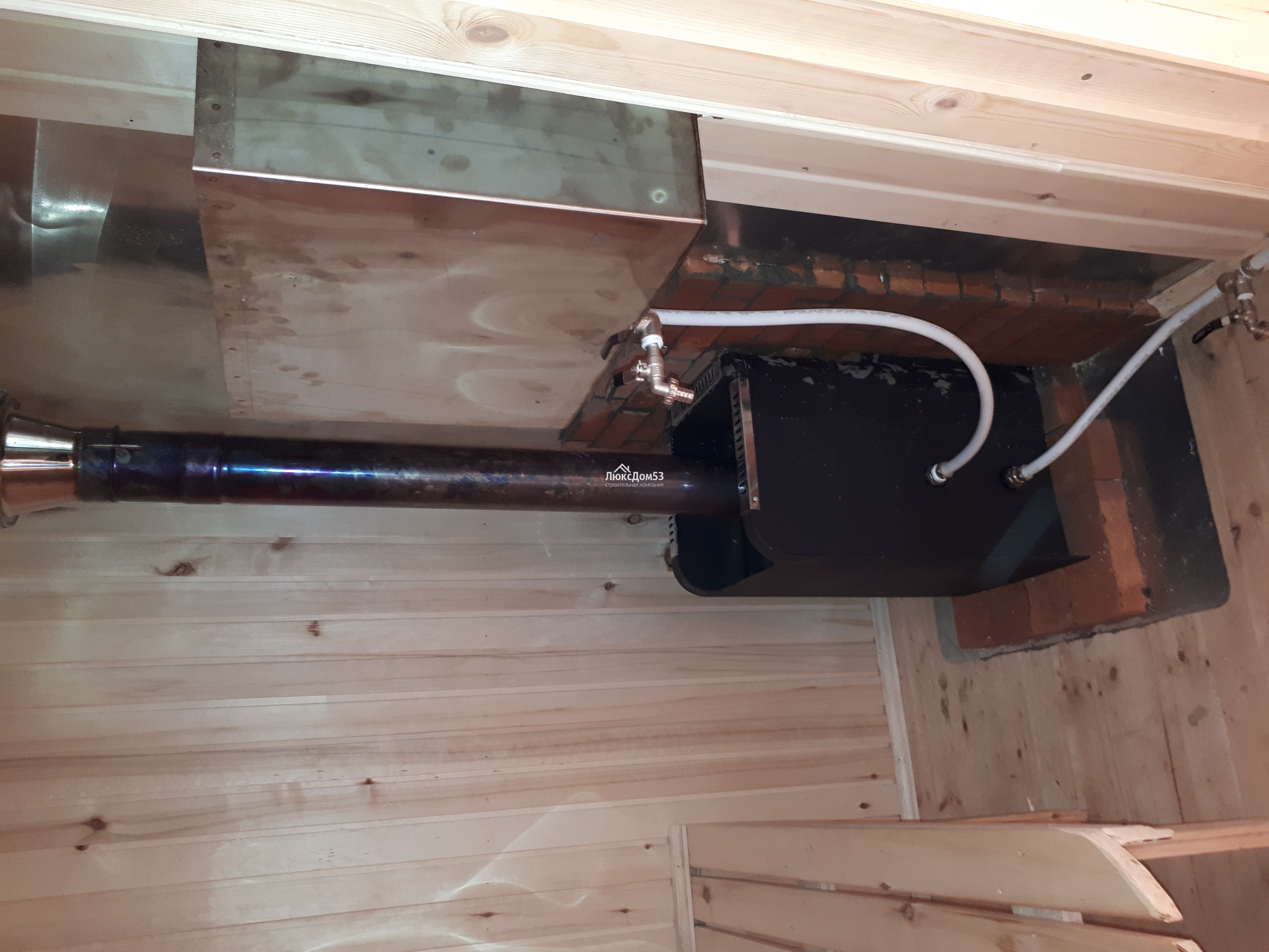 Вывести дымоход (сендвич) через перекрытие для двухэтажной бани