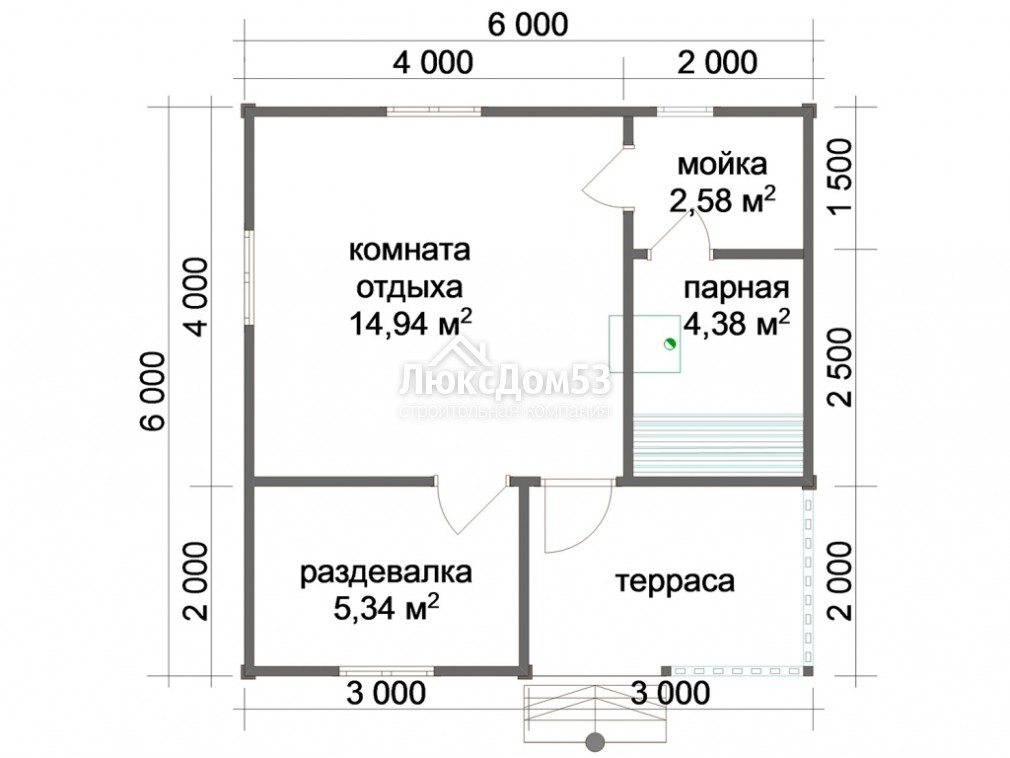 Вывод дымохода предусмотрен через крышу парного отделения (ДЫМОХОД ИЗ НЕРЖАВЕЙКИ!!!)
