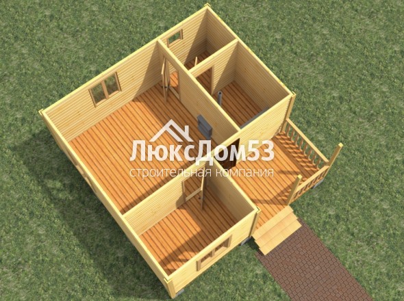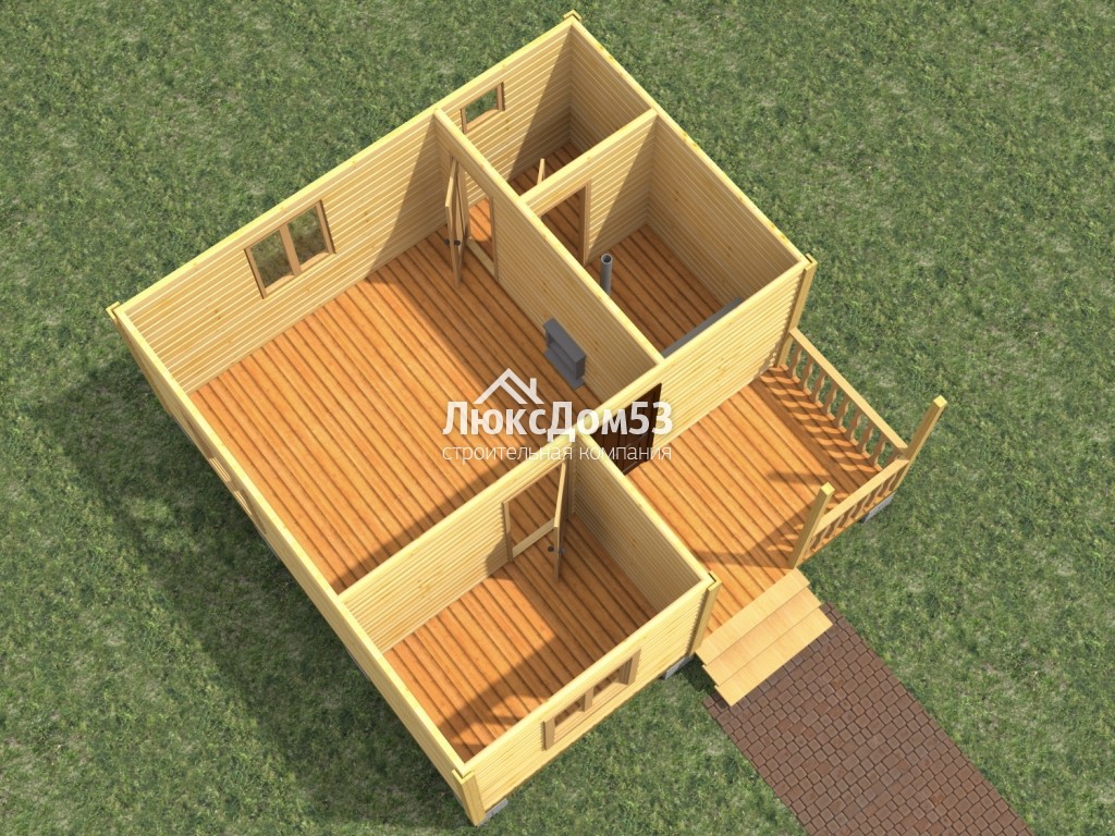 Брусовые, из строганного профилированного бруса 90×140мм. Толщина перегородок 90мм.