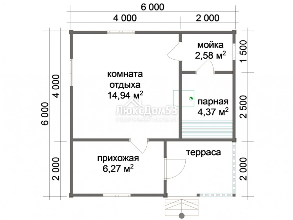 Одноэтажная баня 6x6 м