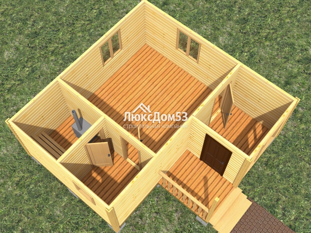 Брусовые, из строганного профилированного бруса 90×140мм. Толщина перегородок 90мм.