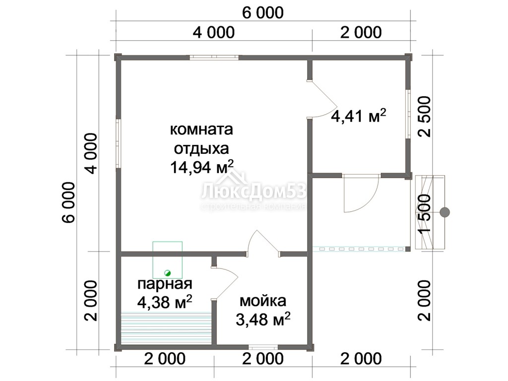 Вывод дымохода предусмотрен через крышу парного отделения (ДЫМОХОД ИЗ НЕРЖАВЕЙКИ!!!)