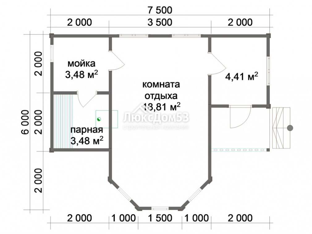Веранда 6×2 м (обшивается вагонкой с внешней стороны), без утепления