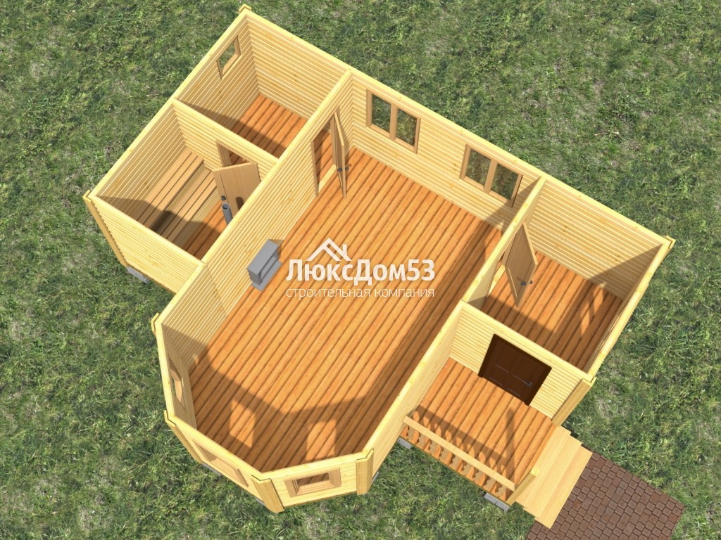 Брусовые, из строганного профилированного бруса 90×140мм. Толщина перегородок 90мм.