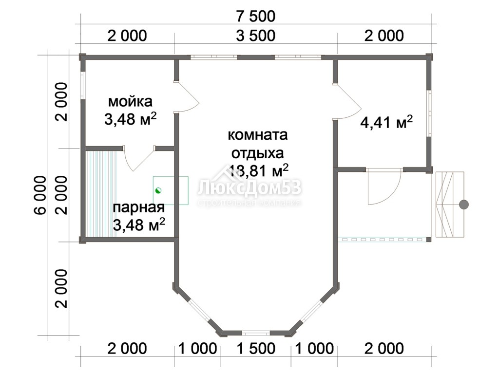 Вывод дымохода предусмотрен через крышу парного отделения (ДЫМОХОД ИЗ НЕРЖАВЕЙКИ!!!)