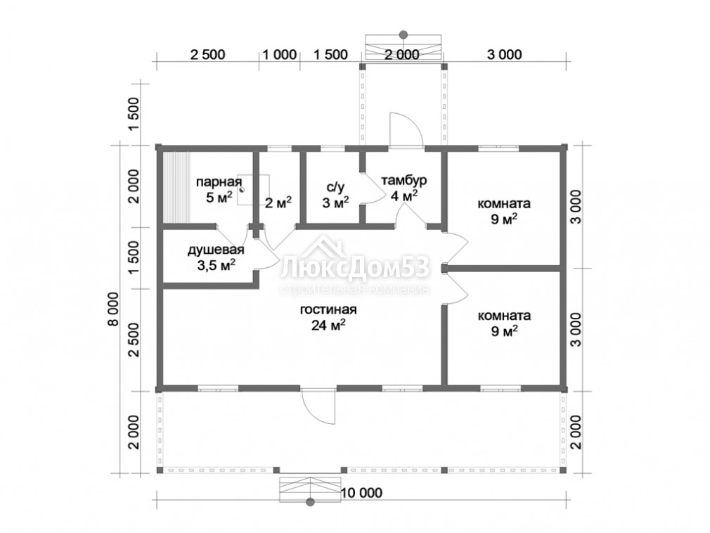 Веранда 6×2 м (обшивается вагонкой с внешней стороны), без утепления