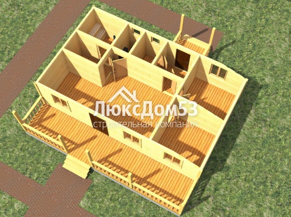 Брусовые, из строганного профилированного бруса 90×140мм. Толщина перегородок 90мм.