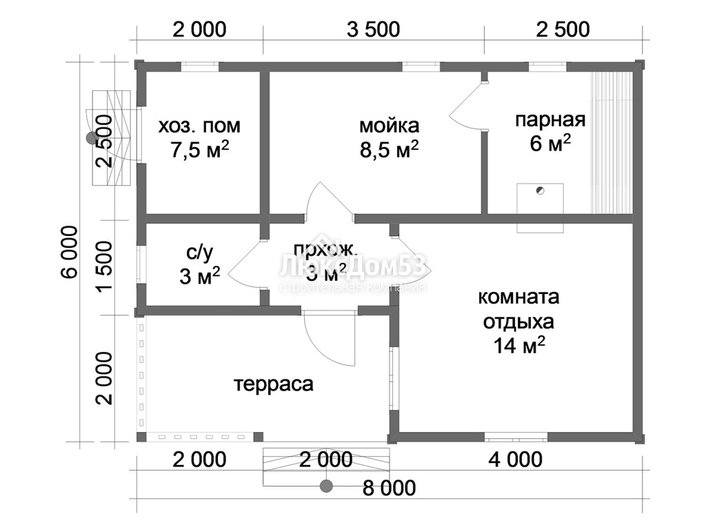 Одноэтажная баня 6х8 м