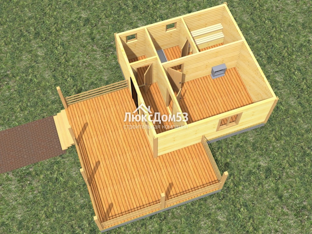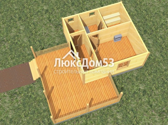 Брусовые, из строганного профилированного бруса 90×140мм. Толщина перегородок 90мм.