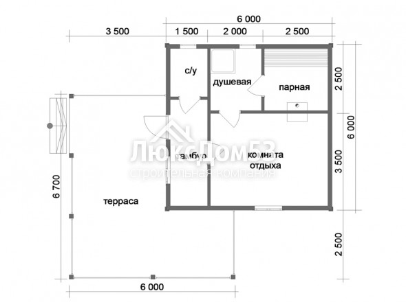 Веранда 6×2 м (обшивается вагонкой с внешней стороны), без утепления