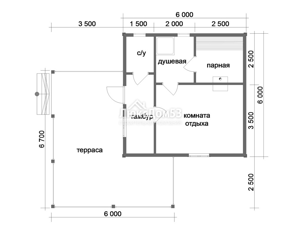 Вывод дымохода предусмотрен через крышу парного отделения (ДЫМОХОД ИЗ НЕРЖАВЕЙКИ!!!)
