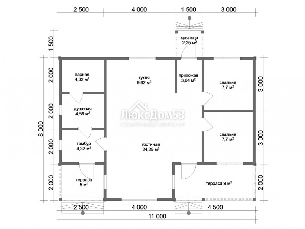 Веранда 6×2 м (обшивается вагонкой с внешней стороны), без утепления