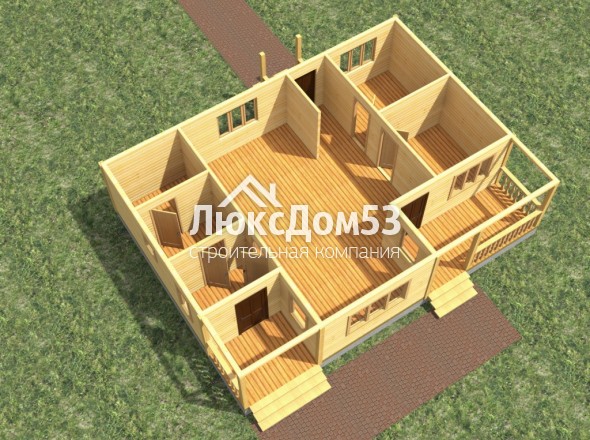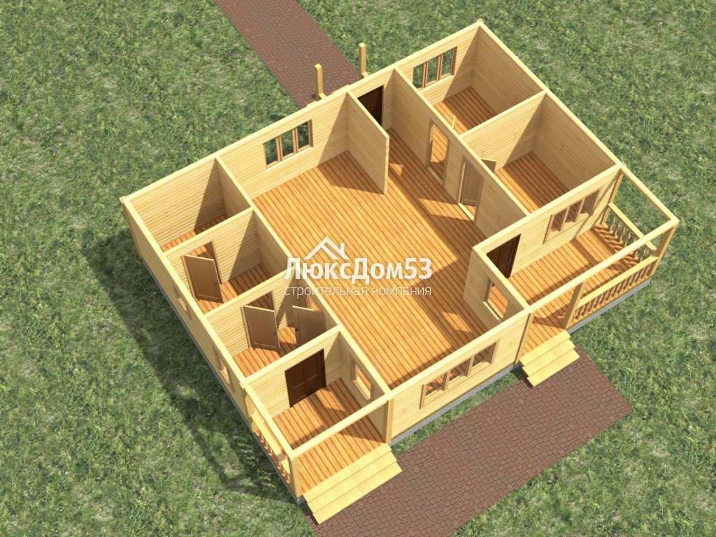 Брусовые, из строганного профилированного бруса 90×140мм. Толщина перегородок 90мм.