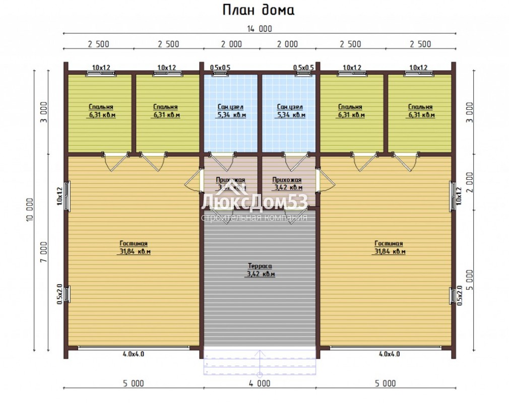 Брус не строганный сечение 100х150мм/150х150мм/200х200мм+50х150мм/50х200мм в зависимости от выбора толщины стен. (1 сорт). В два ряда, для жёсткости лаг. На террасе второй ряд из доски 50х150мм/50х200мм. Монтаж защитной сетки от грызунов!!!