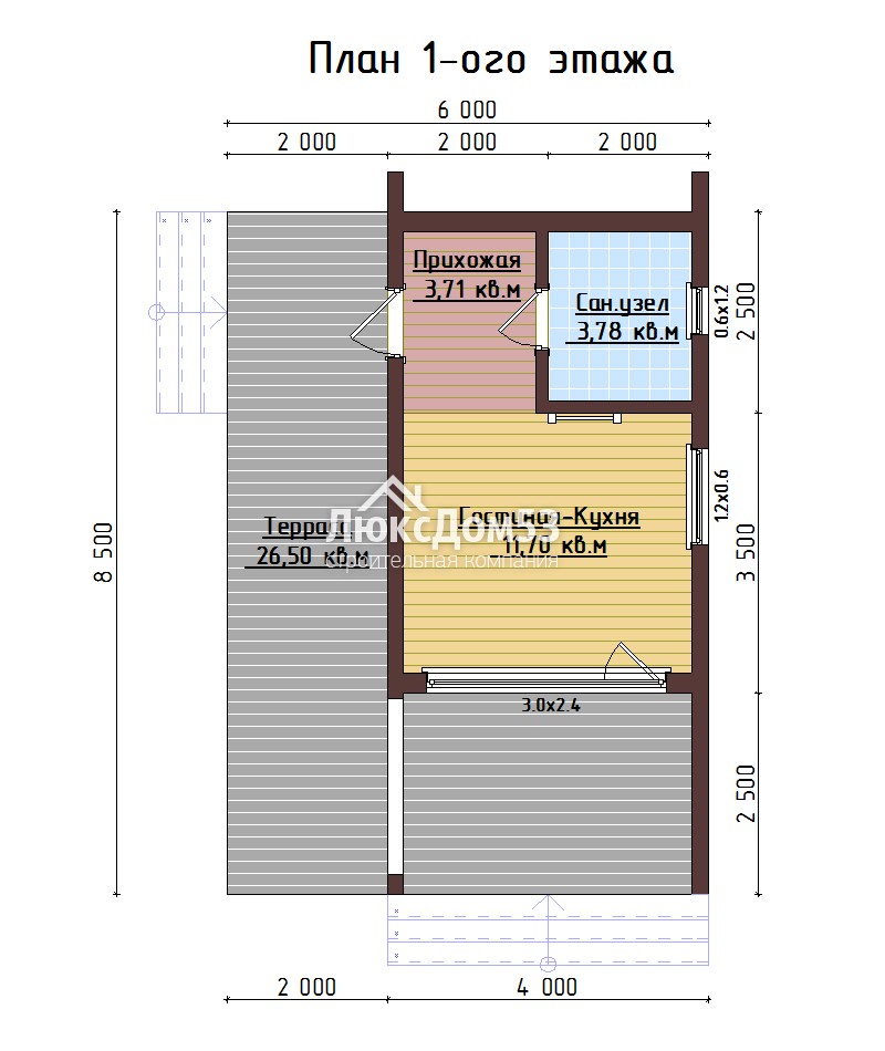 Веранда 6×2 м (обшивается вагонкой с внешней стороны), без утепления