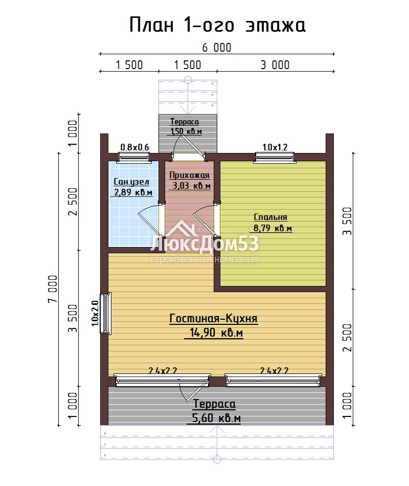 Веранда 6×2 м (обшивается вагонкой с внешней стороны), без утепления |