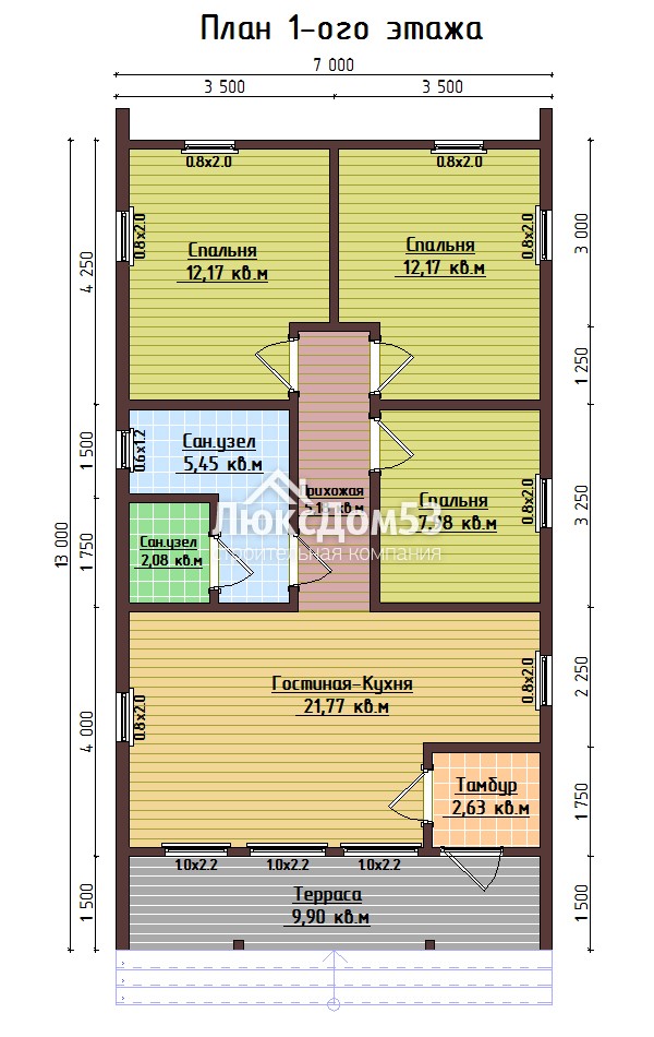 Веранда 6×2 м (обшивается вагонкой с внешней стороны), без утепления
