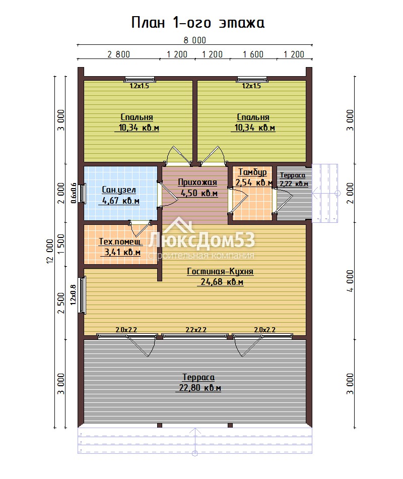 Веранда 6×2 м (обшивается вагонкой с внешней стороны), без утепления