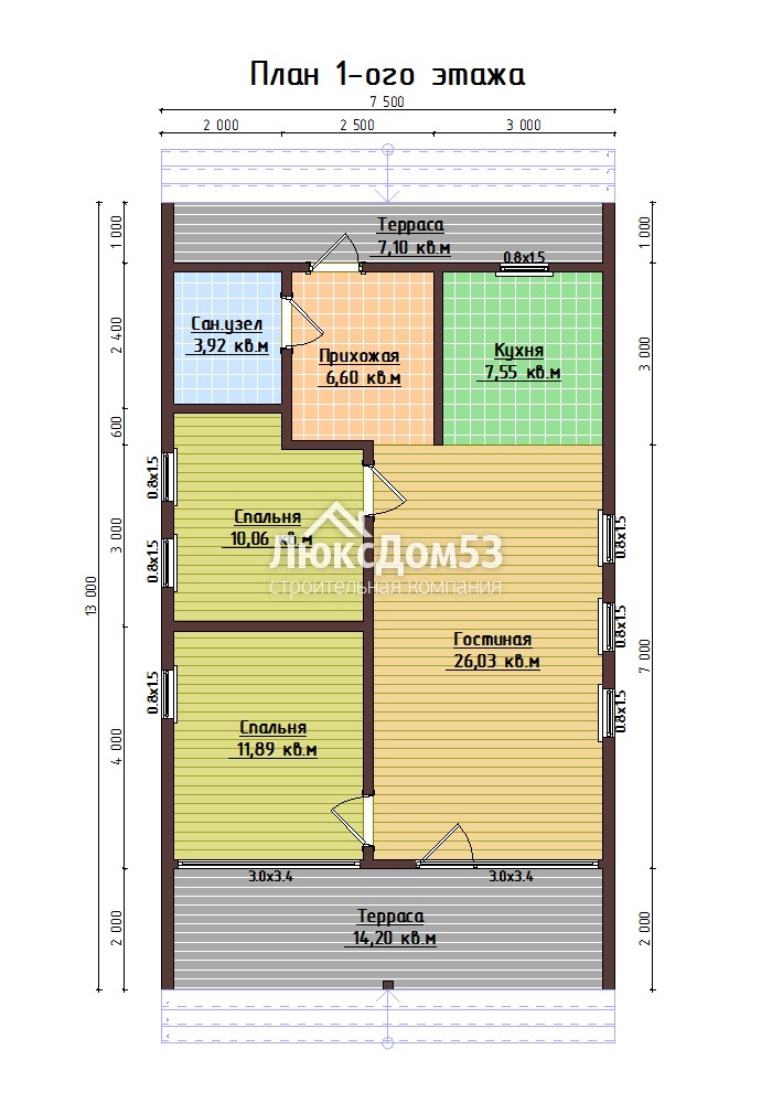 Веранда 6×2 м (обшивается вагонкой с внешней стороны), без утепления