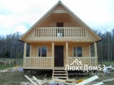С перилами и точеными балясинами. Ступени на лестнице из строганной доски 40×200мм. Тетива из строганного бруса 100х150мм.
