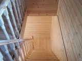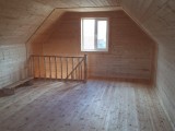 Вагонка Euro хвоя, сорт «В» принудительной сушки 12х90х6000мм: потолок первого этажа, стены и потолок мансардного этажа, каркасно-щитовые перегородки мансардного этажа.Плинтус и наличники Евро.
