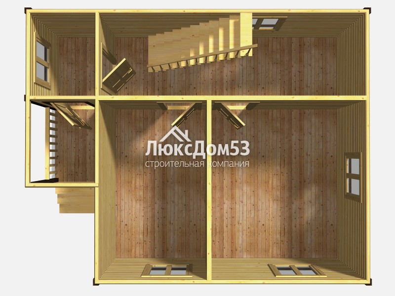 Первого этажа брусовые, из строганного профилированного бруса 90×140мм. Толщина перегородок 90мм.