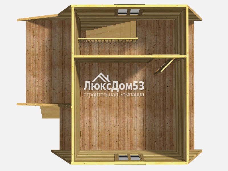 Первого этажа сплошной из обрезной доски 20-22мм (1 сорт).Мансардного этажа отсутствует.