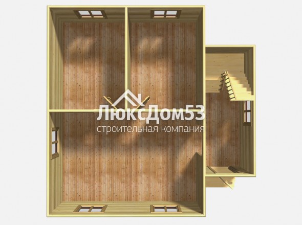 Первого этажа сплошной из обрезной доски 20-22мм (1 сорт).Полуторного этажа не предусмотрен. В качестве чернового пола полуторного этажа выступает потолок первого этажа.
