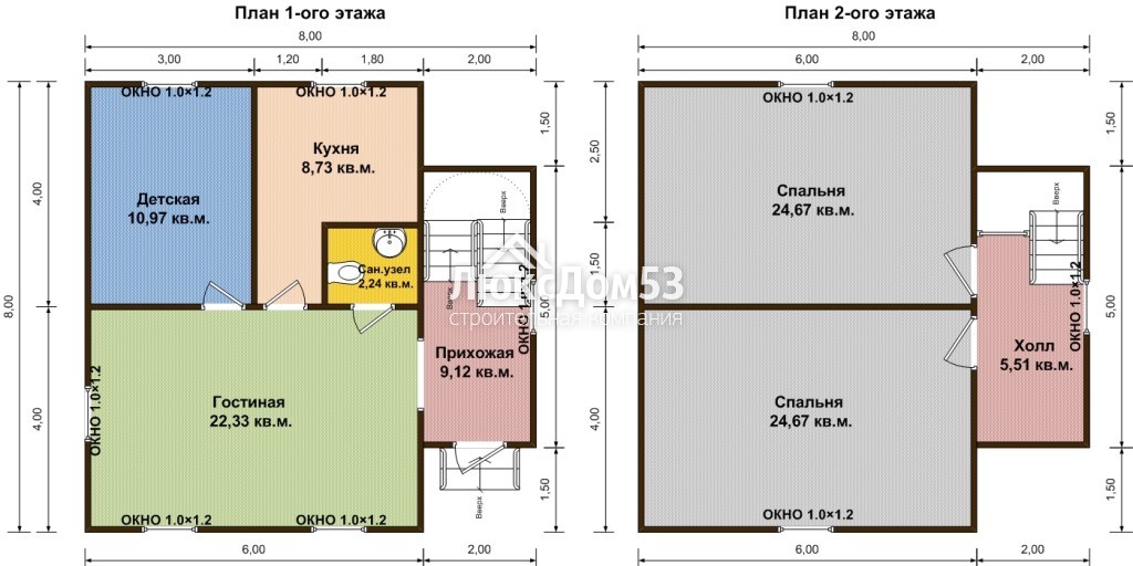 Полутораэтажный дом 8х8 м