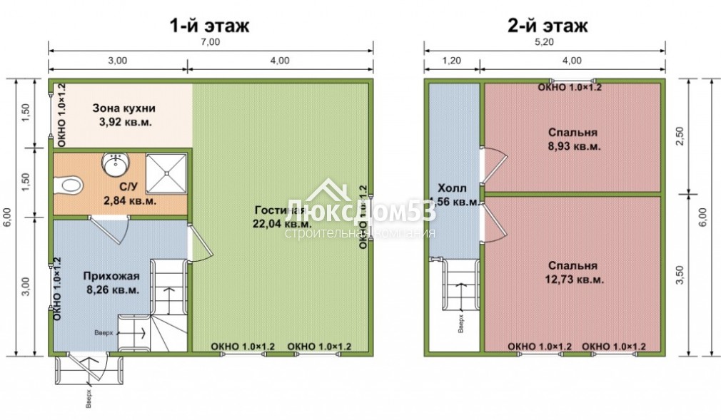 Деревянные, с двойным остеклением и обсадной коробкой. Стандартный размер окна 1.0×1.2м. с фурнитурой (возможен другой размер по желанию заказчика). Кол-во и размер по проекту.(В оконные проемы впиливаются ройки).