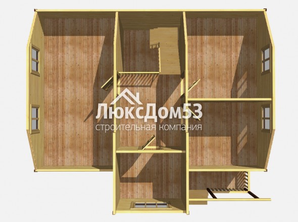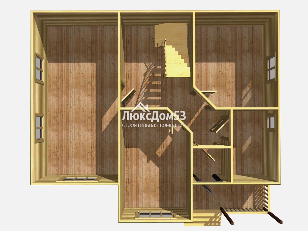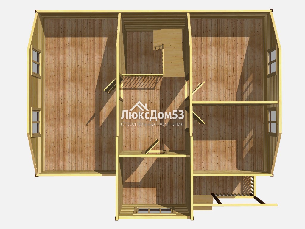 Первого этажа сплошной из обрезной доски 20-22мм (1 сорт).Полуторного этажа не предусмотрен. В качестве чернового пола полуторного этажа выступает потолок первого этажа.