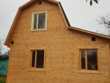 Первого этажа брусовые, из строганного профилированного бруса 90×140мм. Толщина перегородок 90мм.Мансардного этажа каркасно-щитовые, не утепленные.
