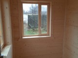 Деревянные, с двойным остеклением и обсадной коробкой. Стандартный размер окна 1.0×1.2м. с фурнитурой (возможен другой размер по желанию заказчика). Кол-во и размер по проекту.(В оконные проемы впиливаются ройки).