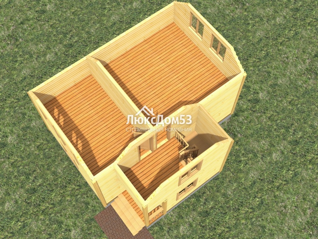 Первого этажа сплошной из обрезной доски 20-22мм (1 сорт).Полуторного этажа отсутствует.