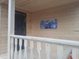 Ограждение из плоских фигурных балясин. На террасе полы из террасной доски , укладываются с зазором 5мм для стока воды.