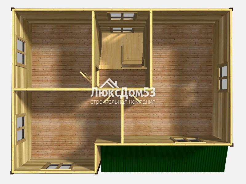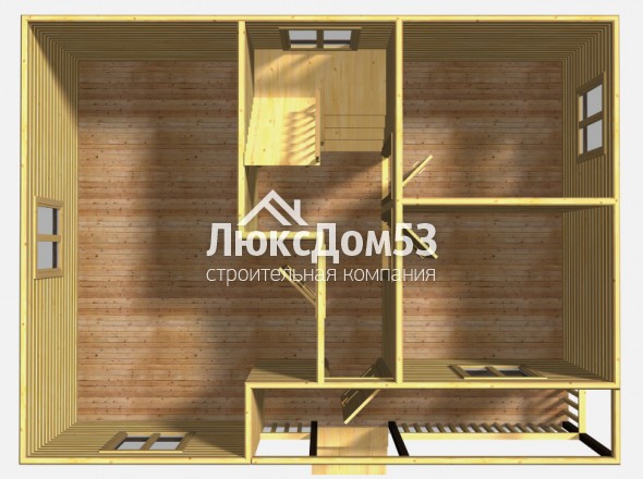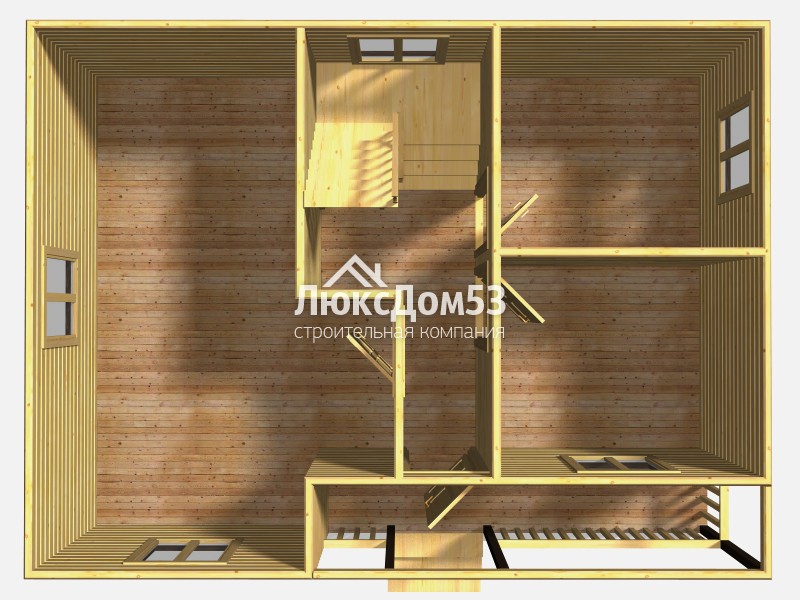 Второго этажа брусовые, из строганного профилированного бруса 90х140мм. Толщина перегородок 90мм (если предусмотрены проектом).