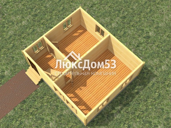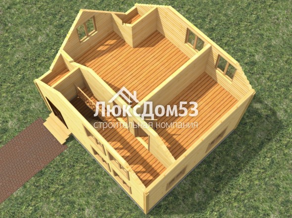 Первого этажа сплошной из обрезной доски 20-22мм (1 сорт).Полуторного этажа не предусмотрен. В качестве чернового пола полуторного этажа выступает потолок первого этажа.