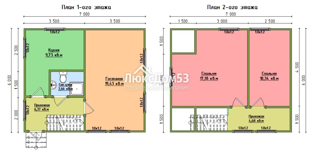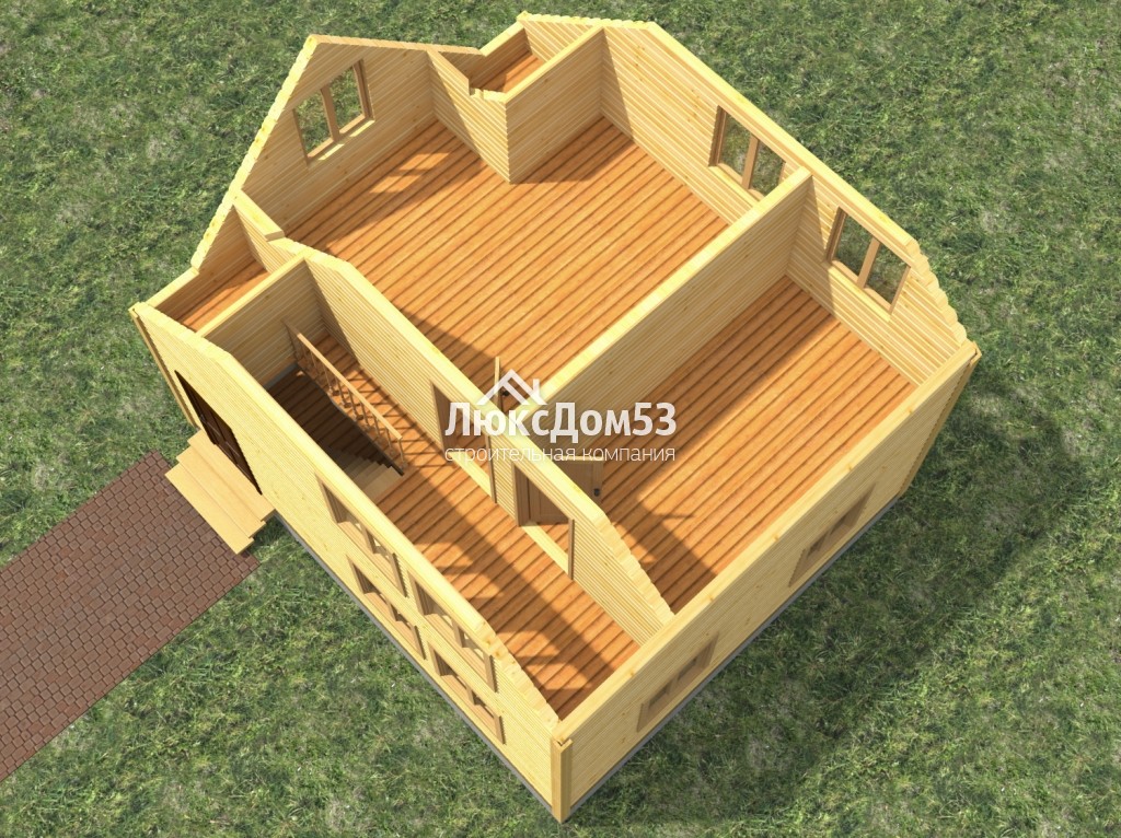 Первого этажа сплошной из обрезной доски 20-22мм (1 сорт).Полуторного этажа отсутствует.