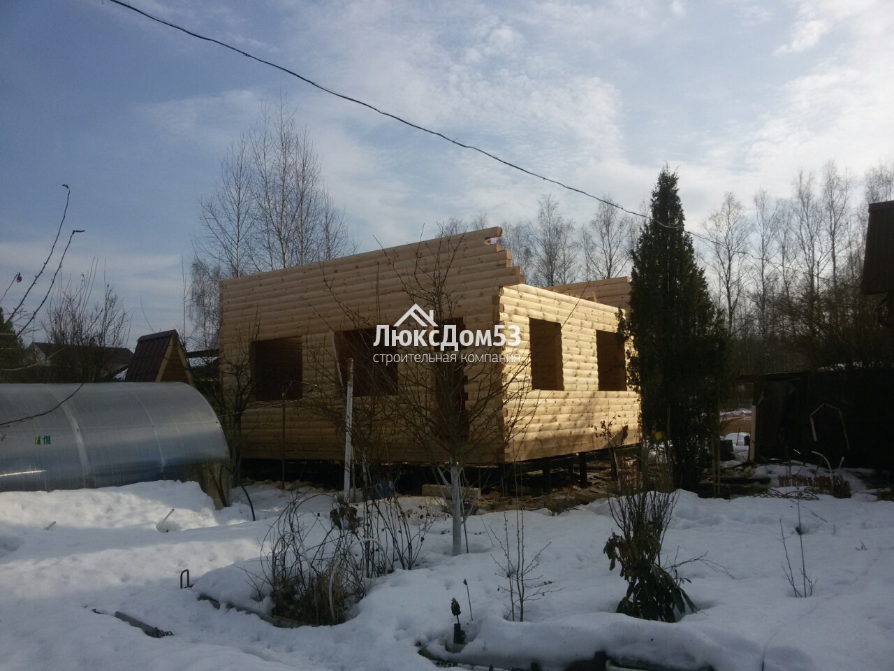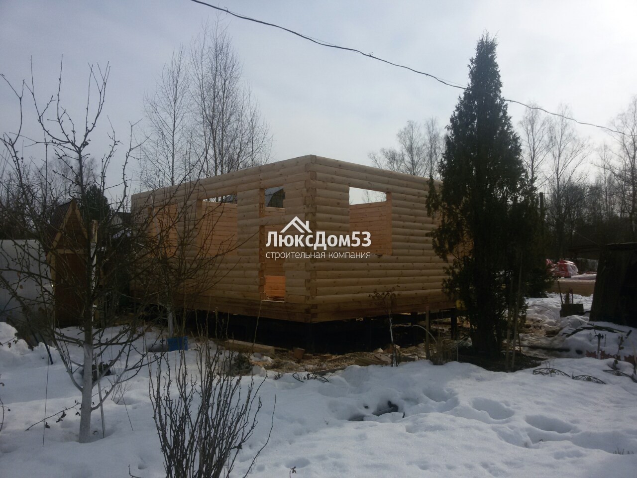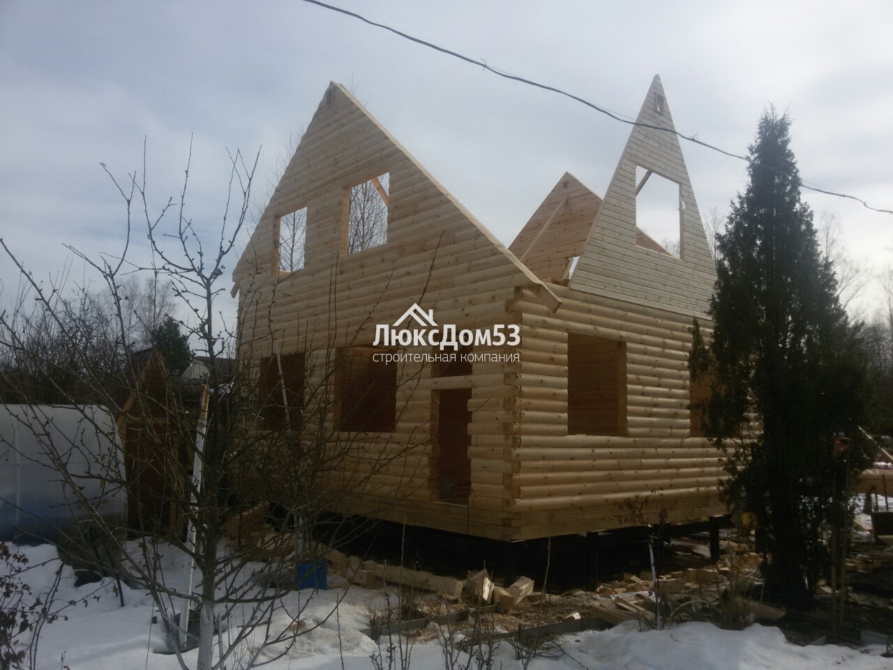 Первого этажа 2.3-2.35м 17 венцов бруса.Полуторного этажа 2.3м, Атик поднятый каркас из доски 40х100/150/200мм на 1.5м.