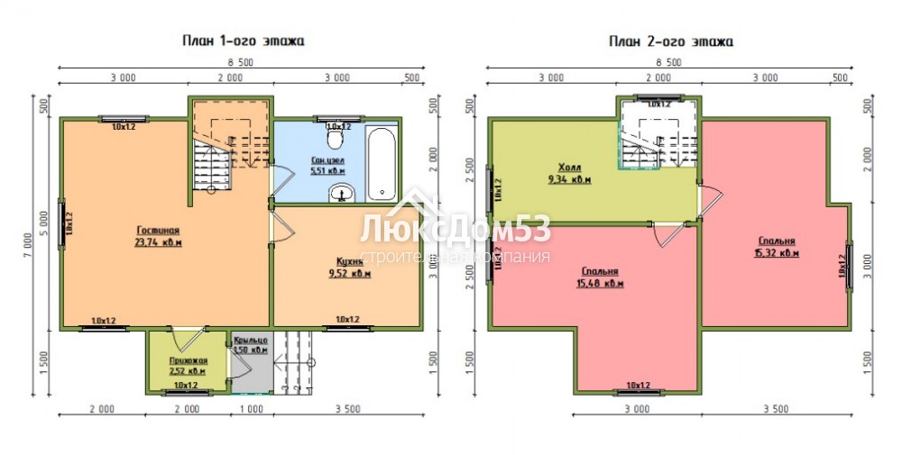Первого этажа сплошной из обрезной доски 20-22мм (1 сорт).Полуторного этажа отсутствует.