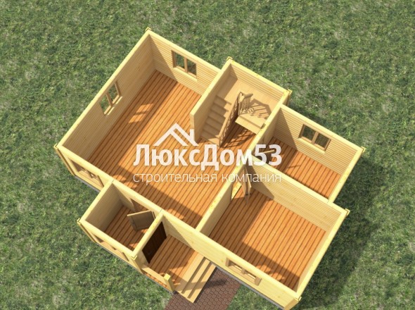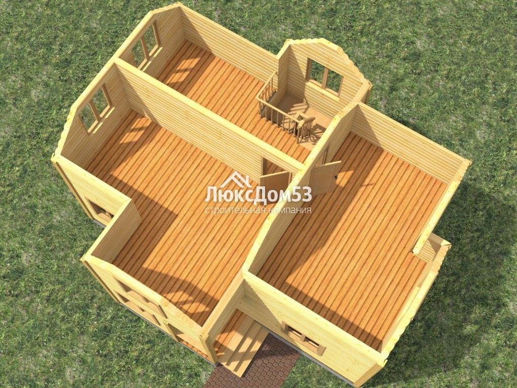 Первого этажа брусовые, из строганного профилированного бруса 90х140мм. Толщина перегородок 90мм.