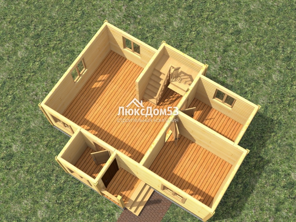 Первого этажа сплошной из обрезной доски 20-22мм (1 сорт).Полуторного этажа не предусмотрен. В качестве чернового пола полуторного этажа выступает потолок первого этажа.