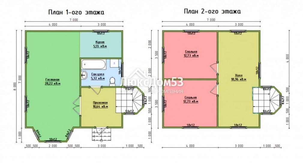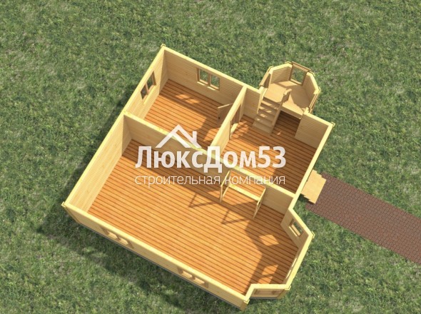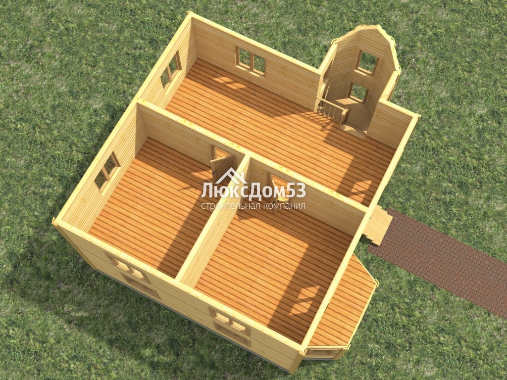 Второго этажа брусовые, из строганного профилированного бруса 90х140мм. Толщина перегородок 90мм (если предусмотрены проектом).