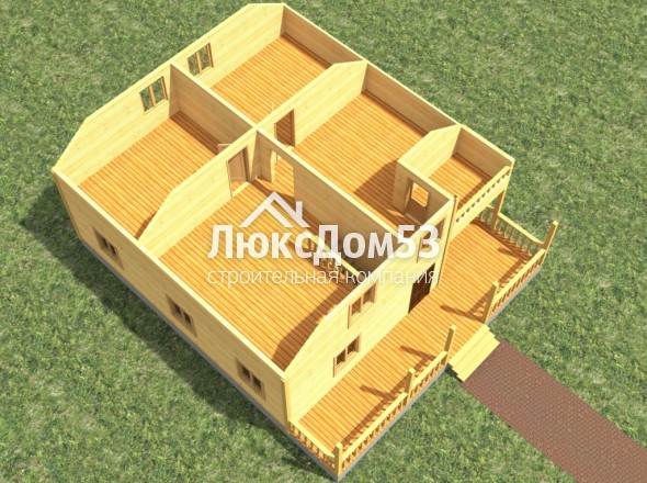 Первого этажа сплошной из обрезной доски 20-22мм (1 сорт).Полуторного этажа отсутствует.