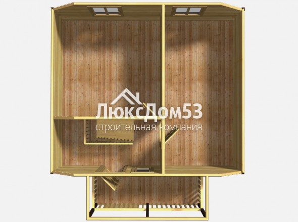 Первого этажа сплошной из обрезной доски 20-22мм (1 сорт).Полуторного этажа отсутствует.
