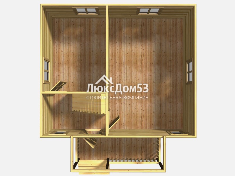 Первого этажа сплошной из обрезной доски 20-22мм (1 сорт).Полуторного этажа не предусмотрен. В качестве чернового пола полуторного этажа выступает потолок первого этажа.